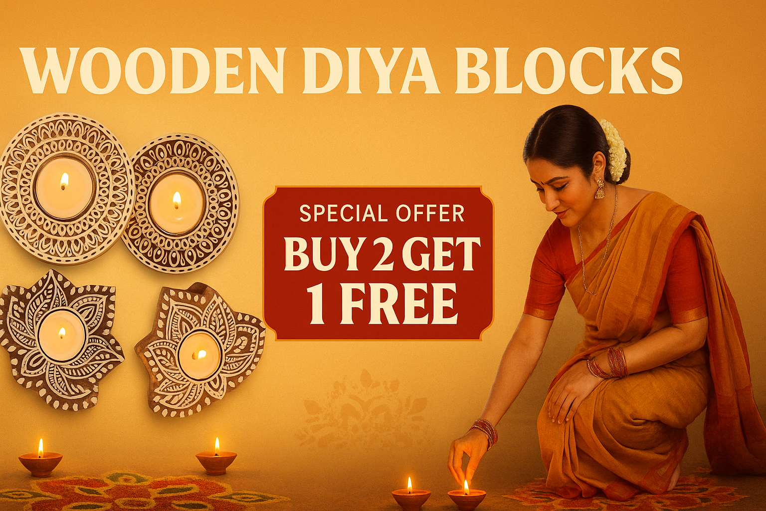 Love the small wooden diya holders. So much more eco-friendly than plastic ones.