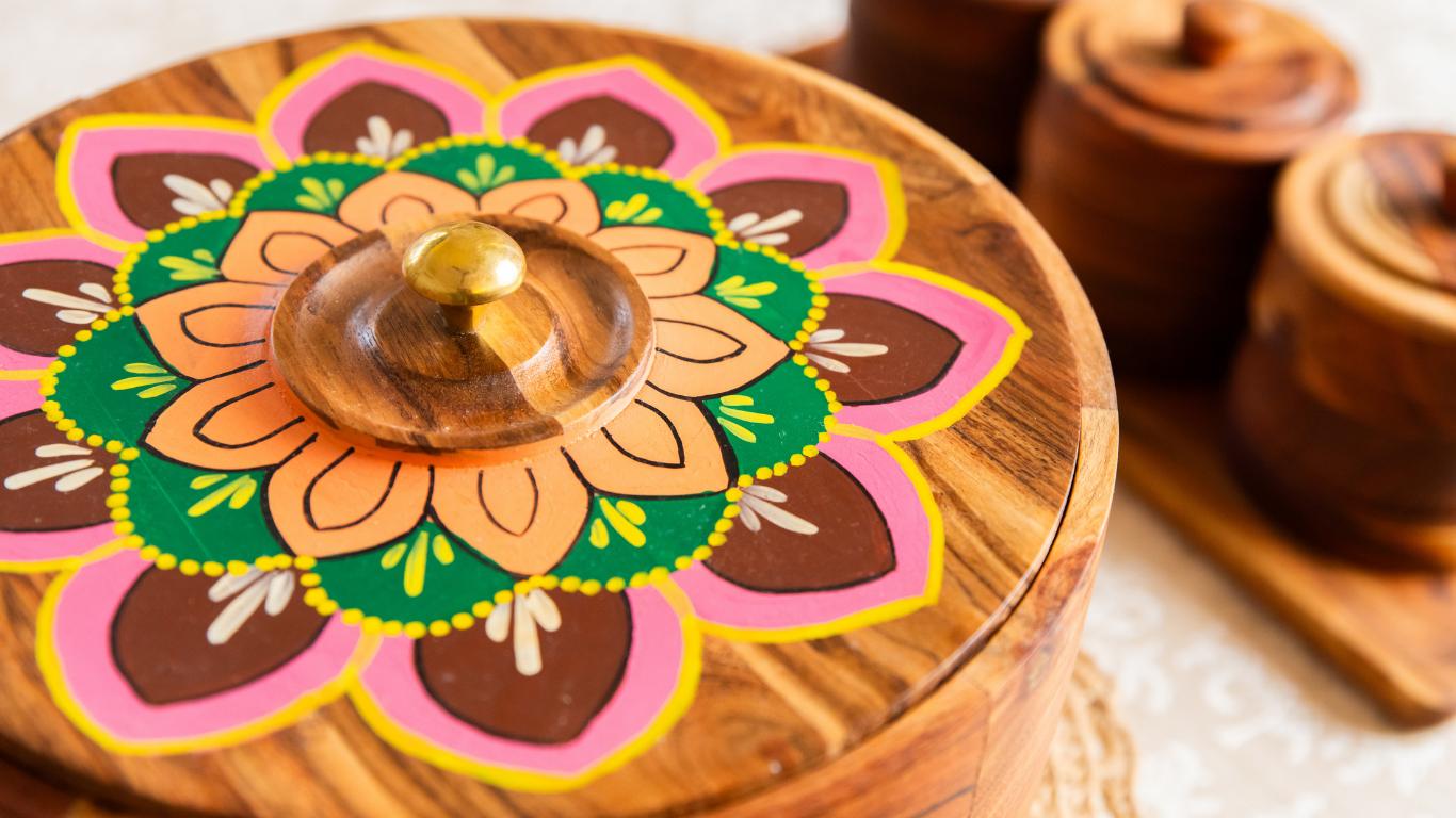 A curated set of handcrafted Acacia wood chapati boxes.